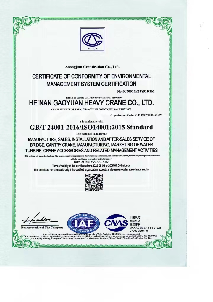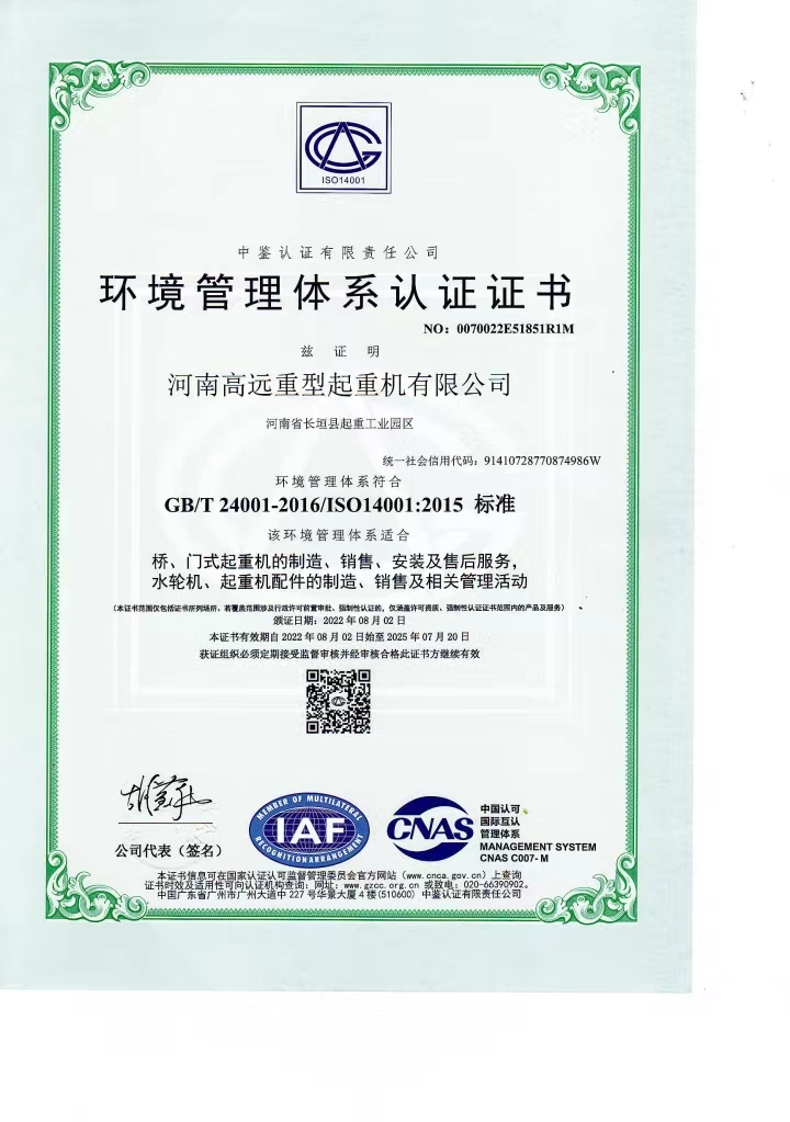 環(huán)境管理體系認(rèn)證證書(shū)